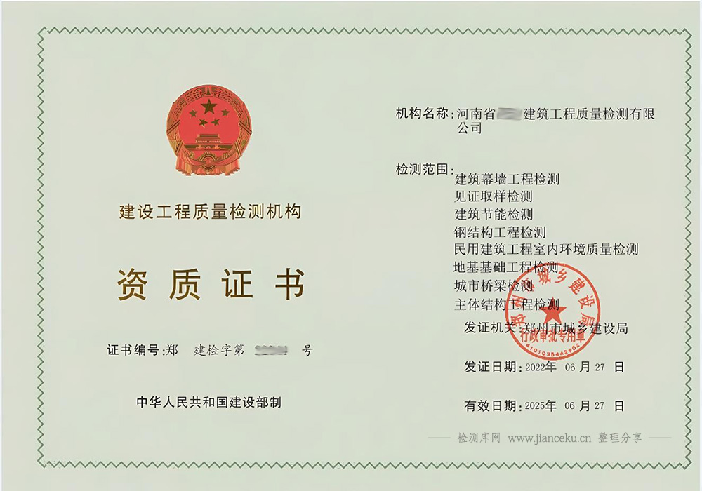 工程质量检测机构资质编号:(豫)建检专字第20250046号